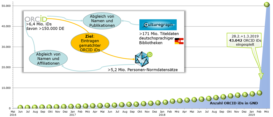 Die ständig wachsende Zahl ORCID iDs in den GND-Datensätzen nutzt nicht nur den GND-Anwendern, sie kann auch bei bei anderen maschinellen Verfahren im GND-Kontext angewendet werden: Bis heute wurden bereits über 200.000 Netzpublikationen mit mindestens einer ORCID iD der beteiligten Personen an die Deutsche Nationalbibliothek abgeliefert, mehrere Hundert kommen täglich hinzu. Derzeit wird an einer Routine gearbeitet, die Titeldaten mit GND-Personen verknüpft, wenn die ORCID IDs übereinstimmen. Damit kann die Metadatenqualität der maschinellen Verfahren erhöht werden.